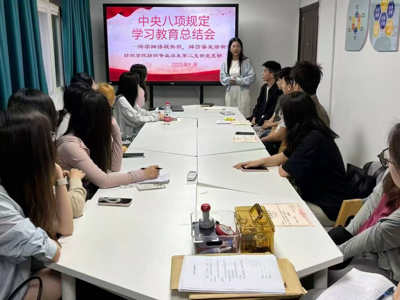 为传达学习习近平总书记关于作风建设的重要指示,贯彻落实学校、学院相关会议精神,9月25日下午,纺织学院学生二支部召开深入贯彻中央八项规定精神学习教育总结会暨9月份主题党日活动。二支部全体党员参与会议,会议由支部书记薛萍主持。会议开始,全体党员重温入党誓词,并庄严宣誓,强化党员的身份意识与责任意识,筑牢坚守初心、践行使命的思想根基。薛萍就这一阶段深入贯彻中央八项规定精神学习教育的情况作出总结汇报,系统梳理了支部在学习部署、...