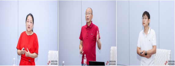 计算机与人工智能学院院长胡新荣作《AI技术赋能针织服装生产提质增效》专题报告。她介绍了人工智能技术在针织服装设计与生产中的创新应用,指出“纺织+AI”跨学科融合在推动纺织数字化转型中的重要作用,为企业数智化转型提供了从“智能设计”到“智能营销”的全链条解决方案。牛仔研究中心主任易长海教授聚焦牛仔产业升级,以《国内外先进牛仔生产工艺及纬编针织面料研发创新》为题作学术报告,分享了在节水染色牛仔面料、抗菌针织牛仔等方向的研发成果与产业化案例,为企业破解“环保压力大、产品同质化”难题提供了具体路径。纺织学院付驰宇博士以《纺织与材料的融合与科技创新》为主题,展示了高性能纤维、智能纺织材料等前沿科技在军工、医疗等领域的转化潜力,为企业拓展“产业用纺织品”新赛道提供了技术参考。