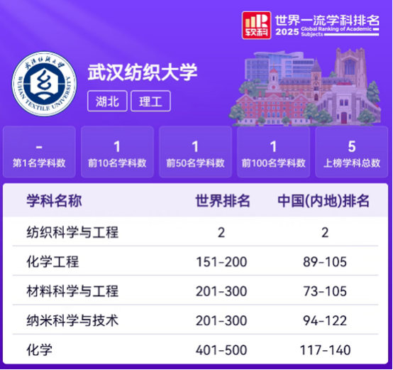 2.纺织科学与工程学科排名跃居世界第二,学科建设再上台阶。学院坚持全面融入和支撑学校发展大局,坚决扛牢责任使命,锚定“双一流”建设核心目标,着力提升学科建设质效,纺织科学与工程学科“软科世界一流学科排名”持续攀升、跃居世界第二、连续三年稳居全球前三,学科实力和影响力持续提升。