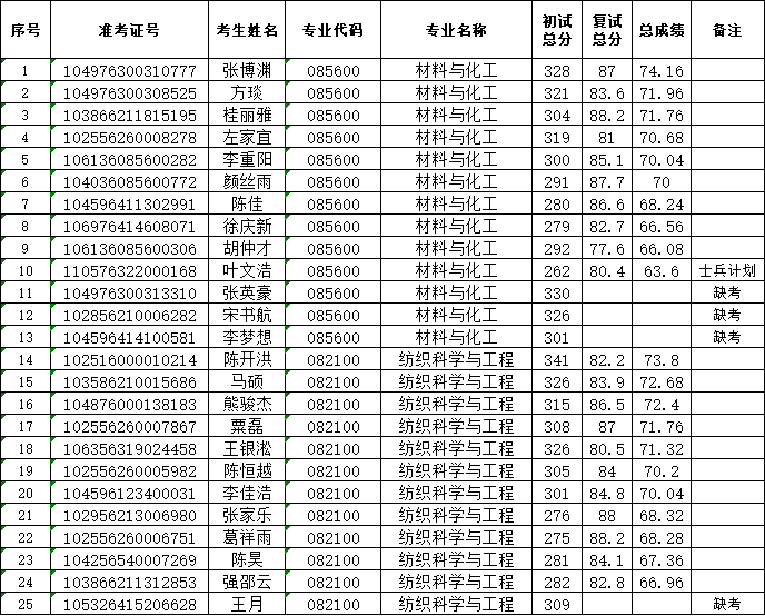 武汉纺织大学纺织科学与工程学院2026年硕士研究生招生调剂复试成绩公示(二)