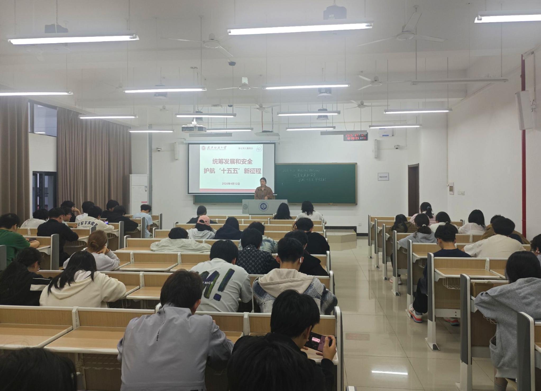 为迎接第十一个全民国家安全教育日,深入贯彻落实总体国家安全观,增强师生国家安全意识,4月12日,纺织学院组织开展“统筹发展和安全,护航‘十五五’新征程”主题班会。班会由辅导员、班主任主持,全体本科生参加。