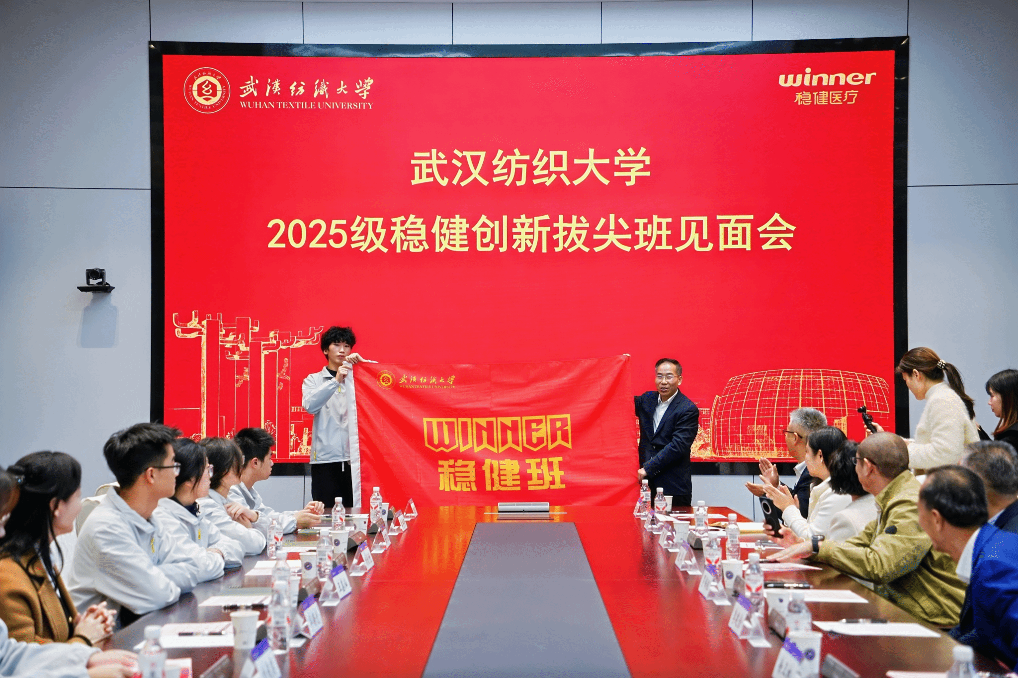 12月8日,武汉纺织大学召开与稳健医疗用品股份有限公司共建的稳健创新拔尖班见面会。稳健集团董事长李建全、武汉纺织大学党委书记徐卫林、武汉纺织大学党委副书记、副校长罗锦银等校企双方领导出席活动,共同见证这一深化产教融合、协同育人的重要时刻。见面会上,武汉纺织大学党委书记、稳健班班主任徐卫林向稳健班班长授予班旗,标志着创新班正式启航。随后,徐卫林向稳健集团董事长李建全颁发“荣誉班主任”聘书,寄托了学校对校企协同、...